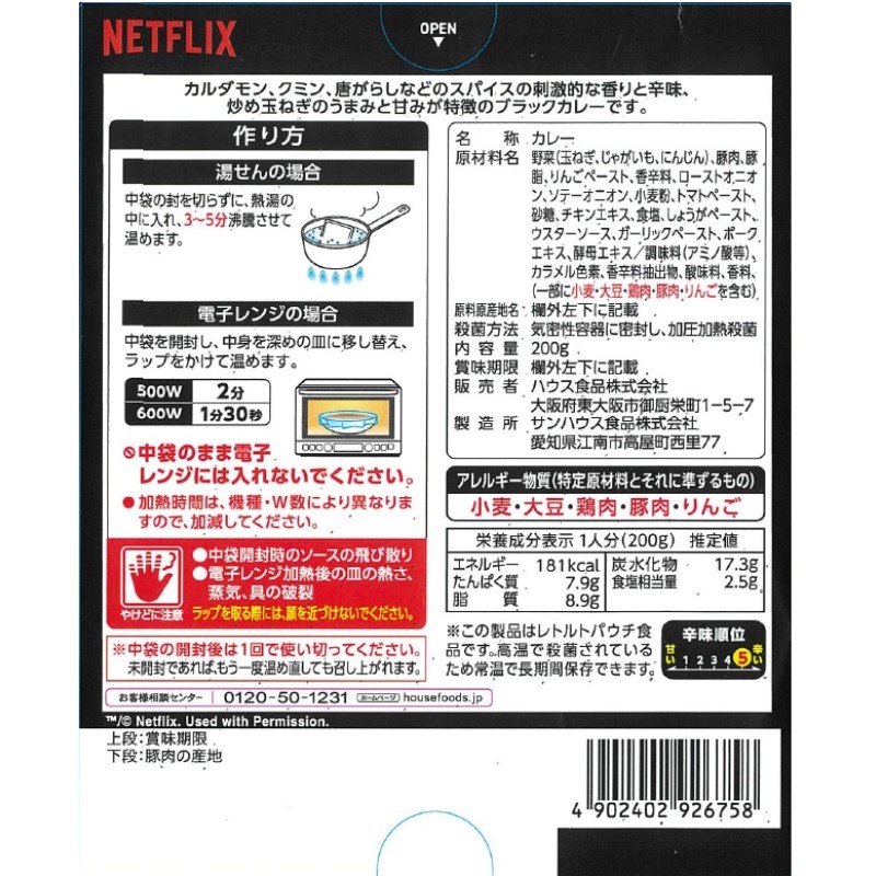ネットフリックスとコラボしたスパイシーブラックカレー。