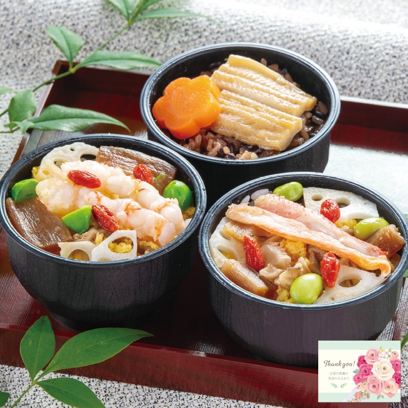 蟹ちらし、海老ちらし、煮穴子茶めし×各1 【特定原材料:小麦、卵、えび、かに】