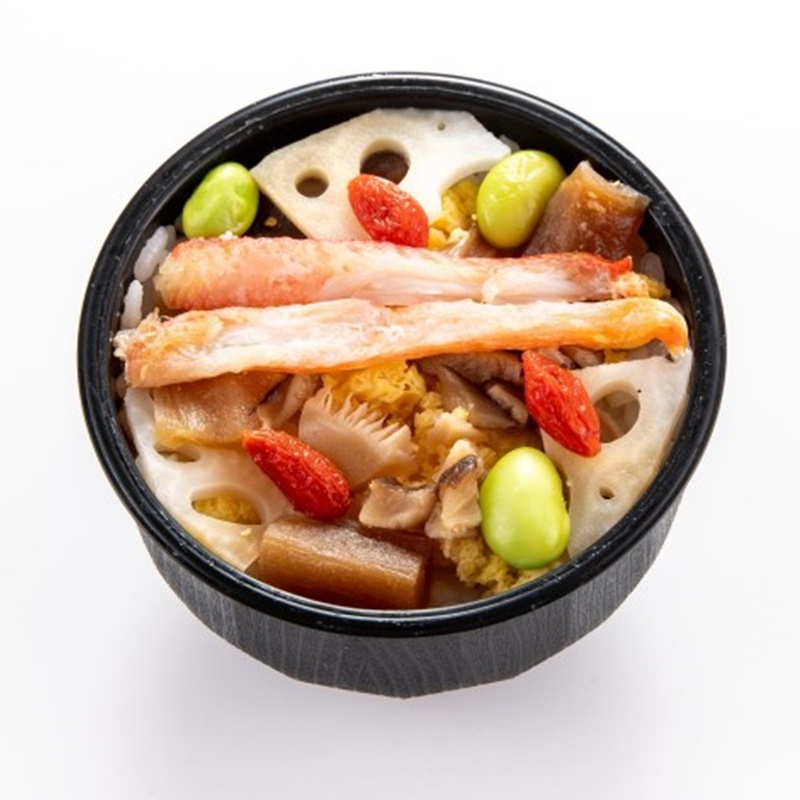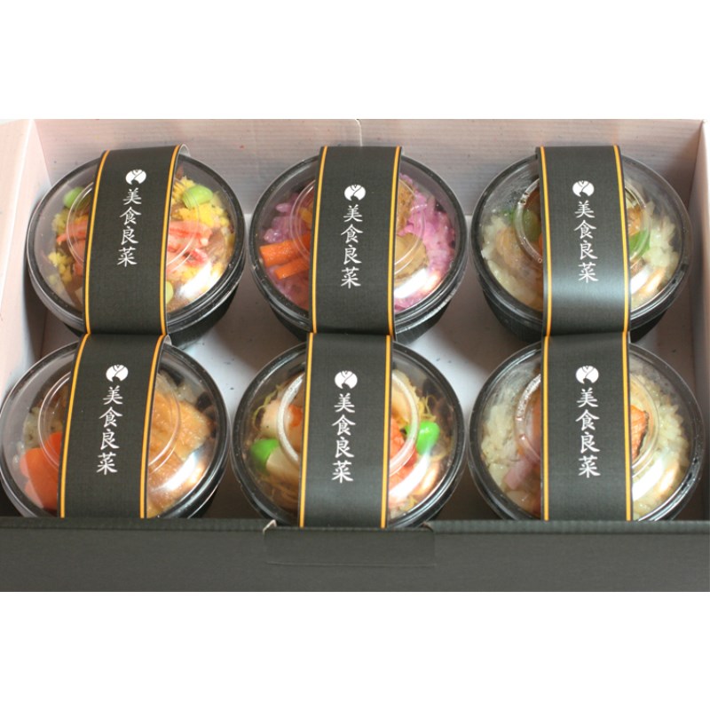 海老ちらし、蟹ちらし、穴子茶めし、帆立黒米酢飯、あさり茶めし、銀鮭塩焼き茶めし×各130g×1 計6点