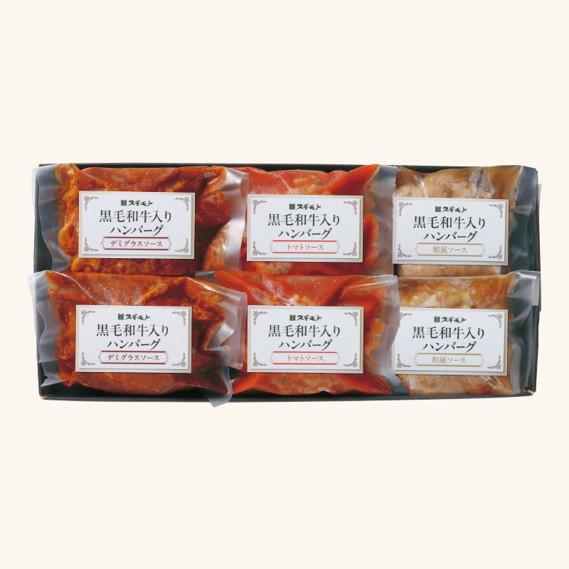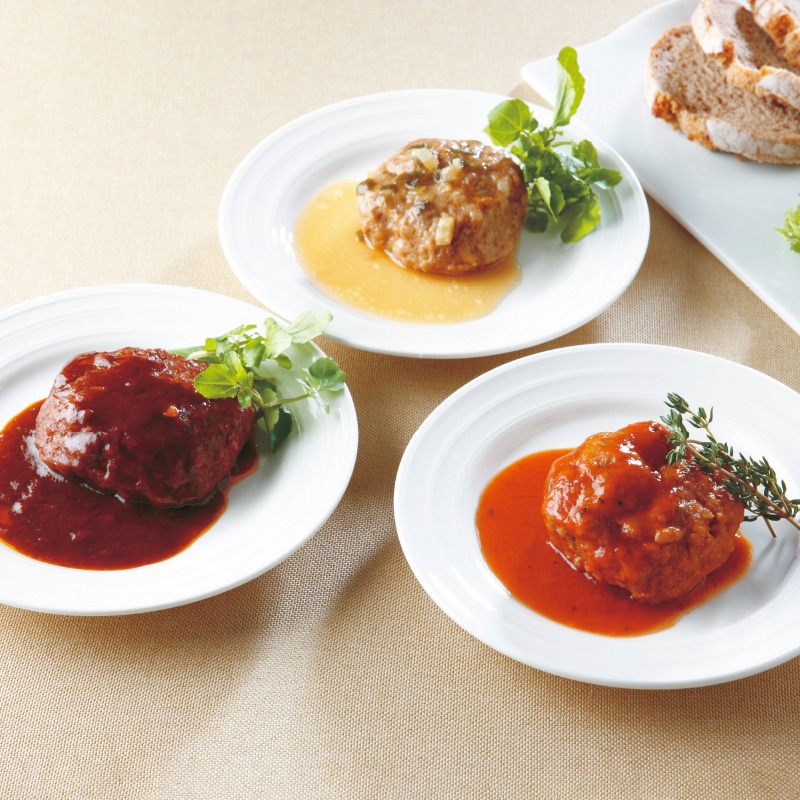 黒毛和牛入りハンバーグ(デミグラスソース・トマトソース・和風ソース)各120g×2