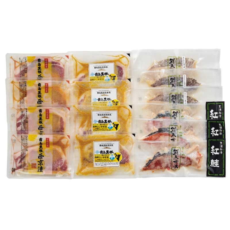 ロース西京味噌漬・ロース西郷どん味噌漬各80g×4、紅鮭黒酒粕漬・からすがれい西京漬×各3<個包装>