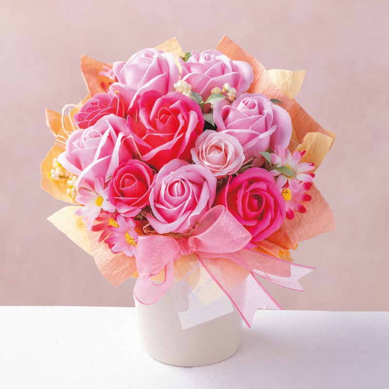 ソープフラワー(ローズ大×7、ローズ小×3)、造花(マーガレット、リーフ)他