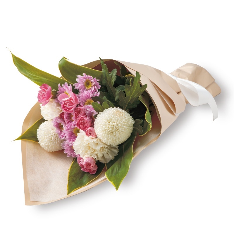 ピンポンマム2本、スプレーマム2本、スプレーカーネーション2本、カーネーション2本、ドラセナ2本 他