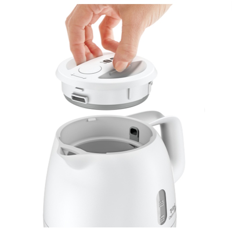 転倒してもお湯がこぼれ出にくい構造でフタが取り外せるので、サッと水を入れられます。