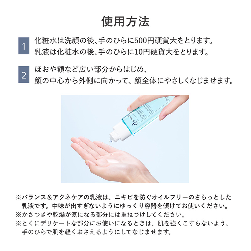 ※ニキビを防ぐオイルフリーのさらっとした乳液です。中味が出すぎないようにゆっくり容器を傾けてお使いください。