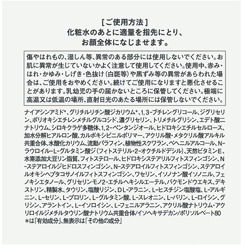 ※2 DL-アラニン、L-アルギニン、L-セリン、L-プロリン、L-グルタミン酸、L-ロイシン、グリシン「以上、全て保湿
