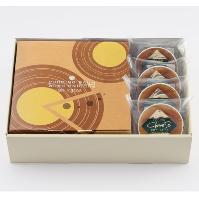 - ぷりんバーム 13.5cm×1、 カラメルソース×4、 半熟チーズケーキ×4