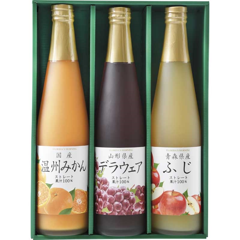青森県産ふじりんご、山形県産デラウェアぶどう、国産温州みかん各500ml×1 計3点
