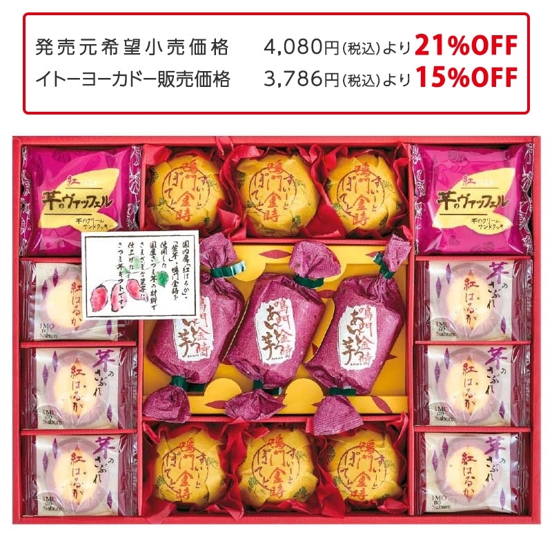 すいーとぽてと70g×6、芋のさぶれ×12、あんとろ芋70g×3、芋のヴァッフェル×2
