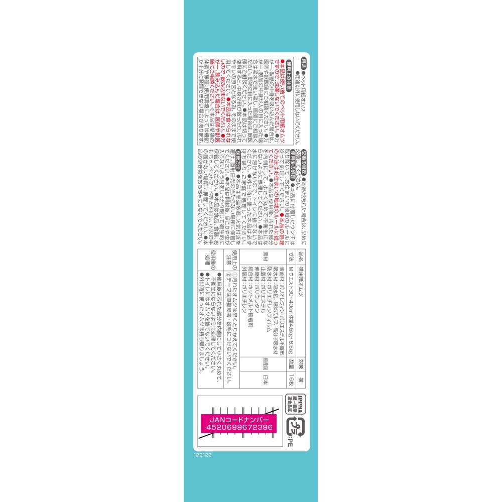 ・パワフル吸収体:最長12時間のオシッコをしっかり吸収。