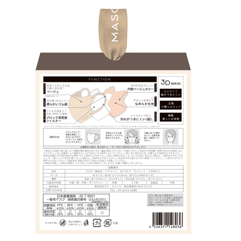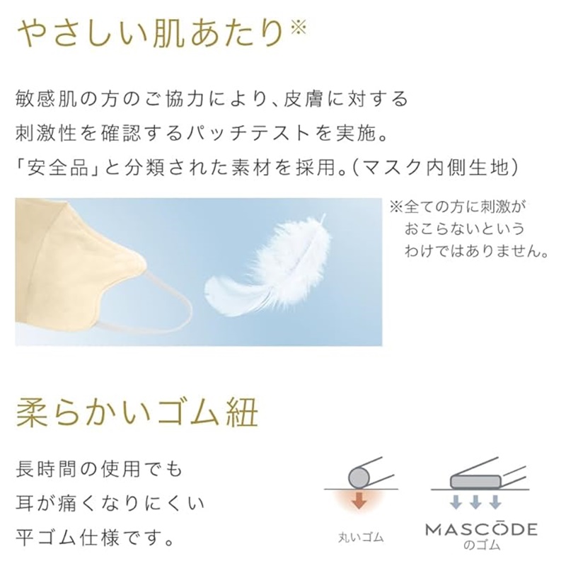 耳が痛くなりにくい柔らかいゴム紐。