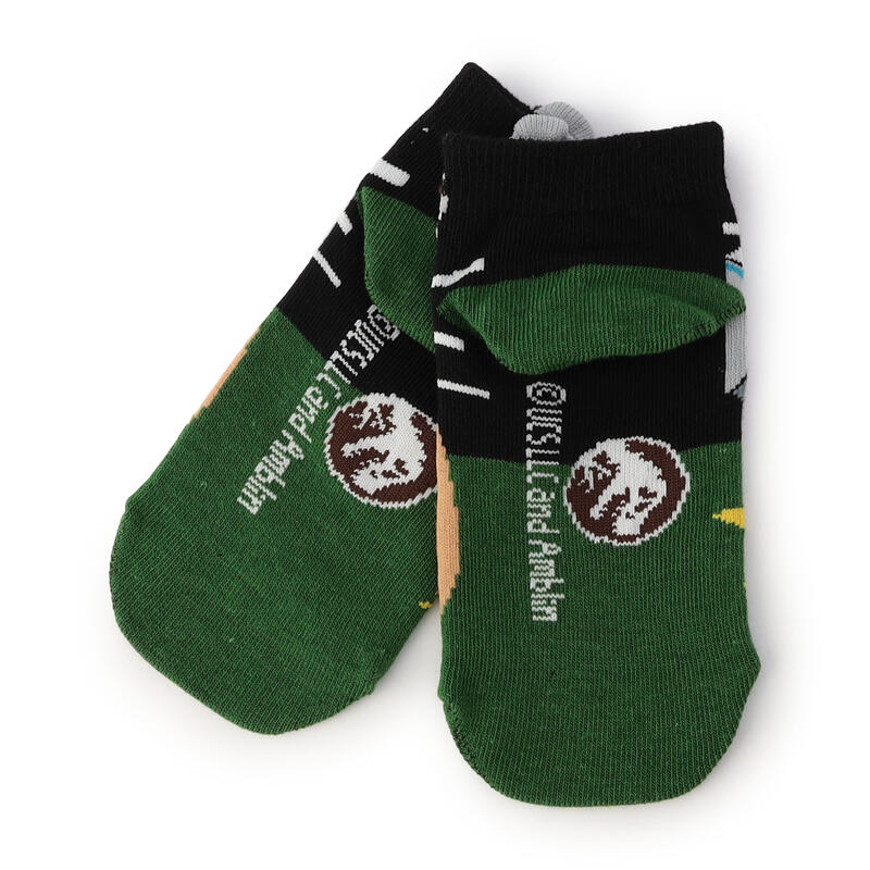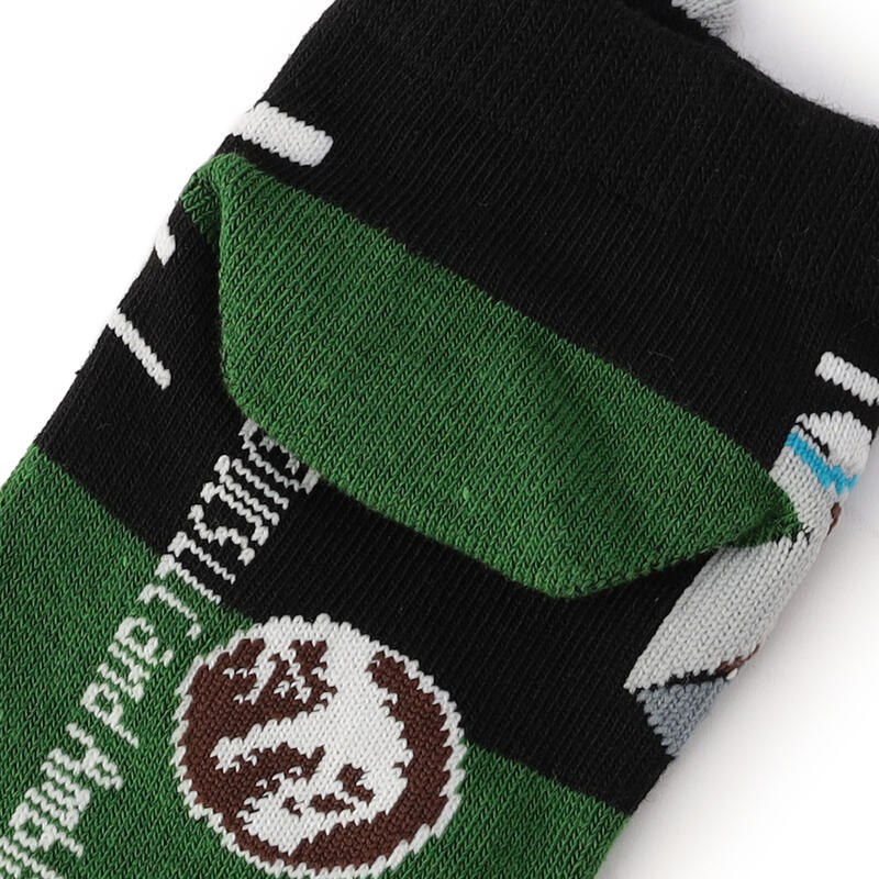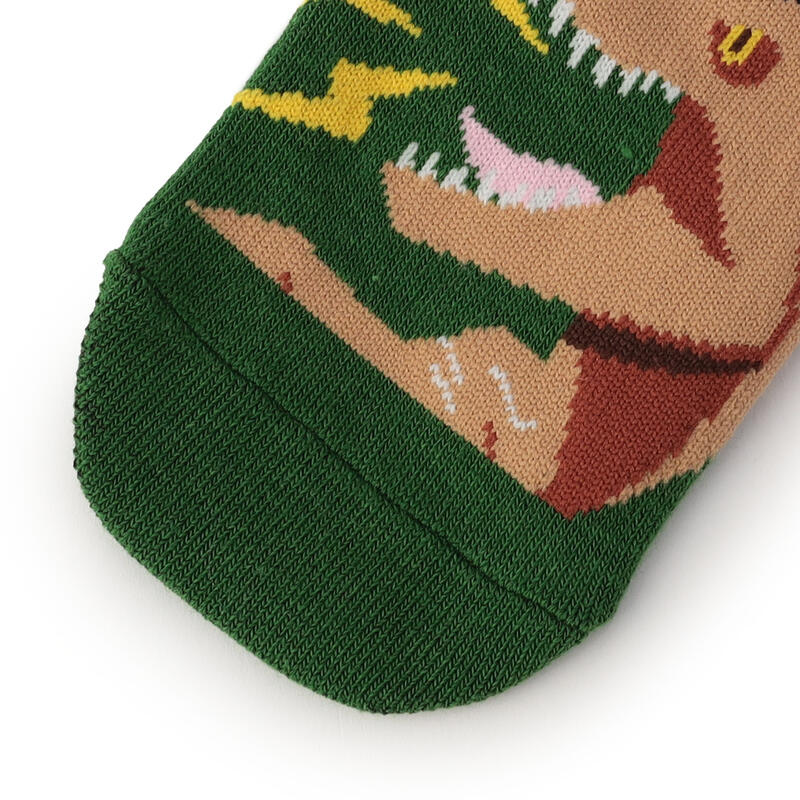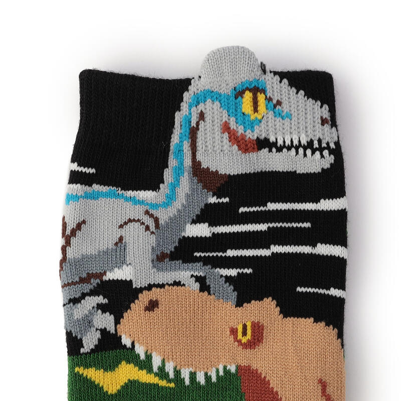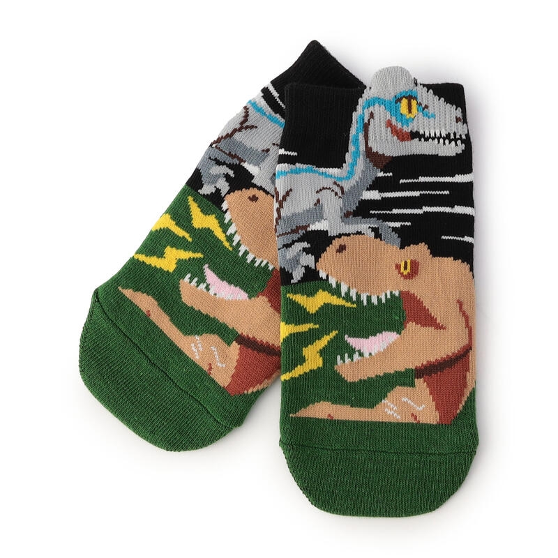 今話題のジュラシックワールドのイラストを甲いっぱいに描いたソックス。