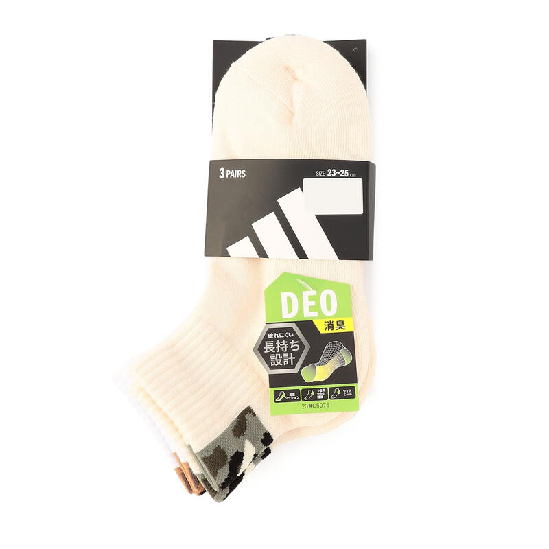 アディダス3足組スニーカー丈ソックスです