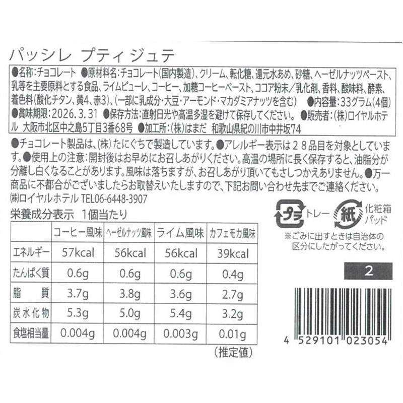 ヘーゼルナッツ風味・ライム風味・コーヒー風味・カフェモカ風味の4粒の見た目も