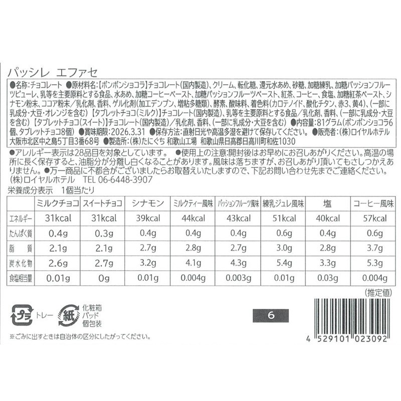 ※アレルギー表示およびアルコール分については、パッケージの裏面画像をご確認頂けますようお願い致します。