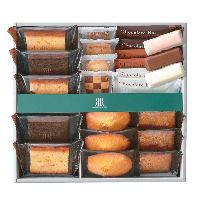 ショコラバー6個、フィナンシェ3個、マドレーヌ3個、チョコレートケーキ2個、