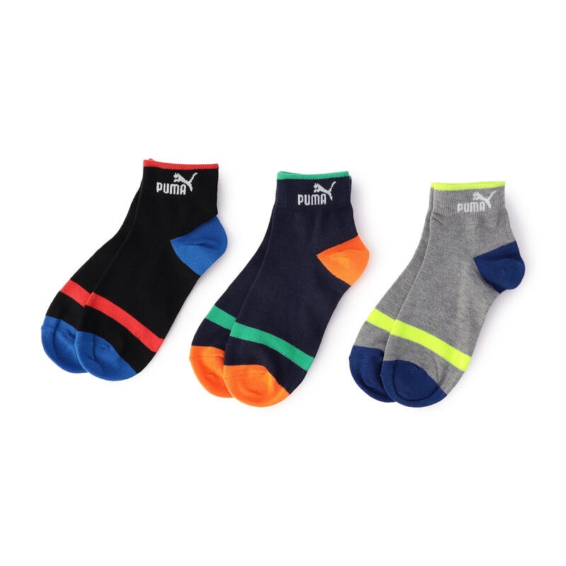 フットインのサイドに配色ロゴを入れたソックスの3足セット。