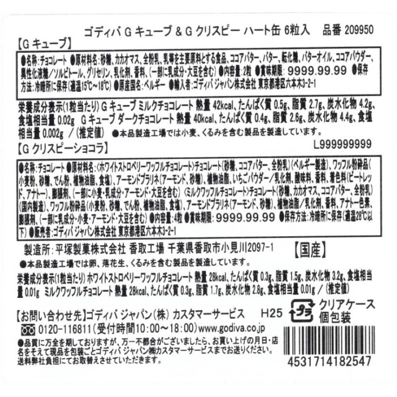 ゴディバ Gキューブ & G クリスピー ハート缶 6粒入