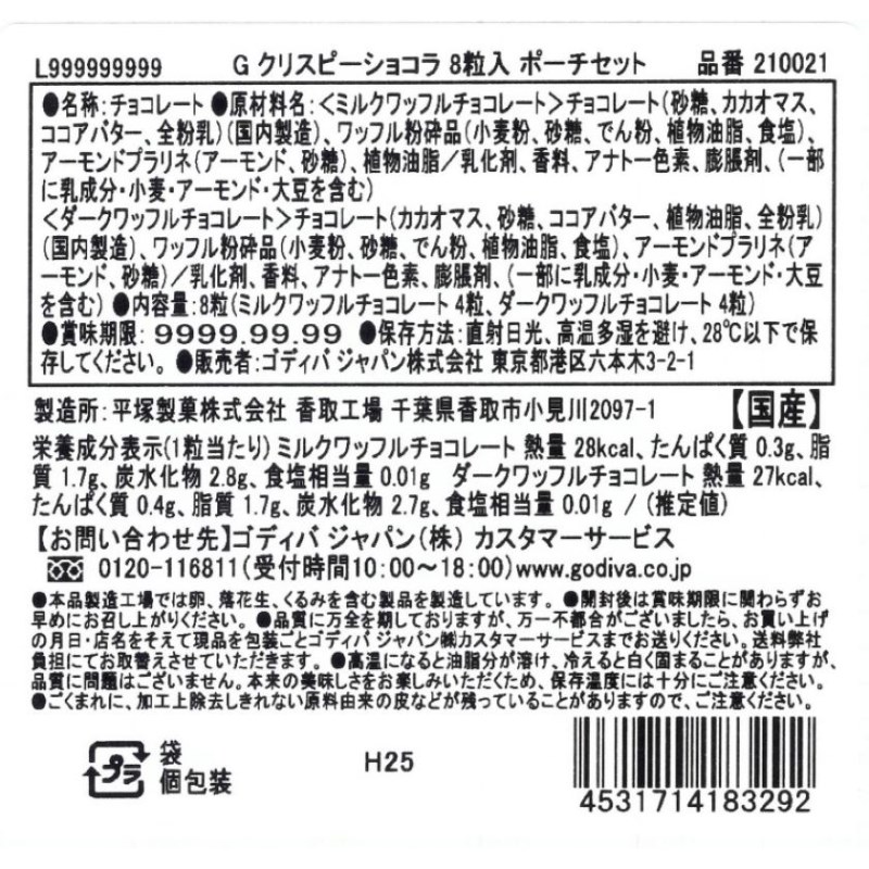 ゴディバ Gクリスピーショコラ8粒入 ポーチセット