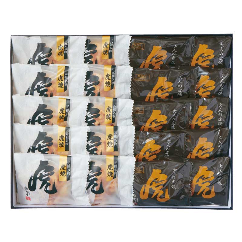 虎焼(粒餡どら焼き)10個、大人の虎焼(ブランデー珈琲の粒餡どら焼き)10個 計20点
