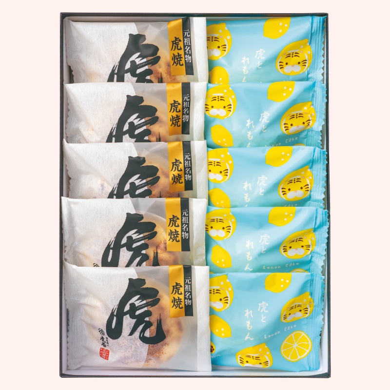虎焼5個、広島れもんけーき5個 計10点、メッセージカード付 【特定原材料:小麦、卵、乳】