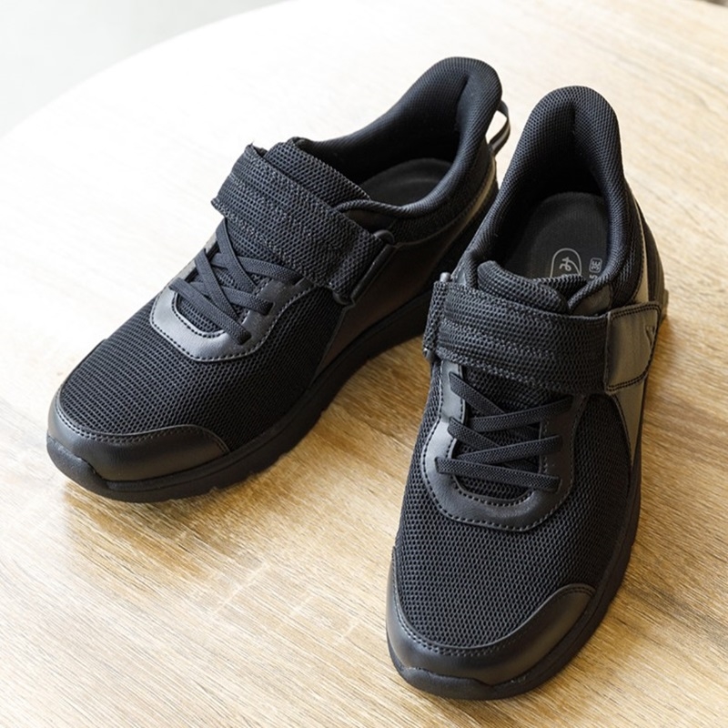 ゴム紐で見た目は普通のスニーカーに見えるつくり。