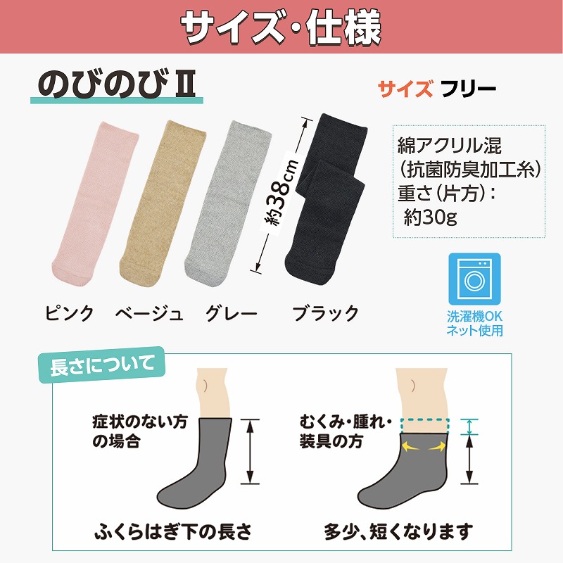 優しく伸びて締め付けない、フリーサイズで足の状態にフィットするから安心。