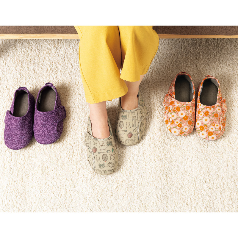 アッパー(甲部)の形状を早快マジックと同様のデザインとし、靴底の材質を自宅・室内用仕様に。