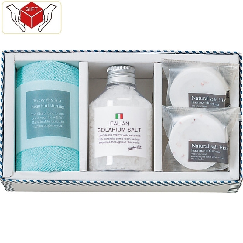 ●マイクロファイバークロス1枚、ソルト・フィズ40g2個、ソルト入浴料(イタリアン)180g1個