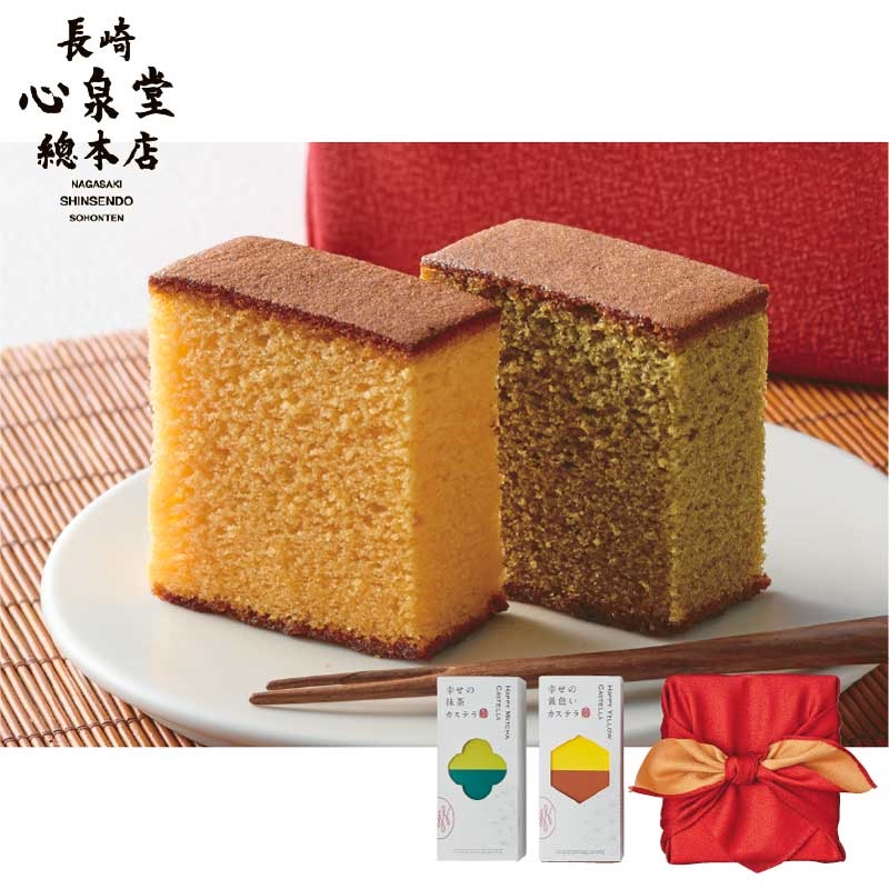 幸せの黄色いカステラ(プレーン味)155g(5切)、幸せの抹茶カステラ155g(5切)×各1
