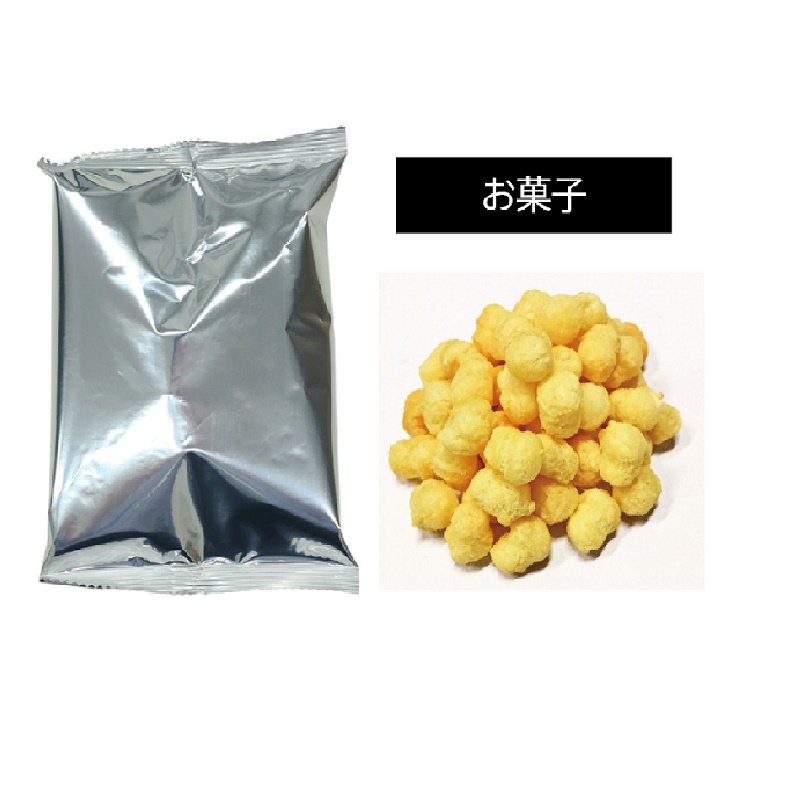 スナック菓子:コーングリッツ(国内製造)、植物油脂、ぶどう糖、チーズパウダー、食塩、たん白加水分解物、粉末醤油、