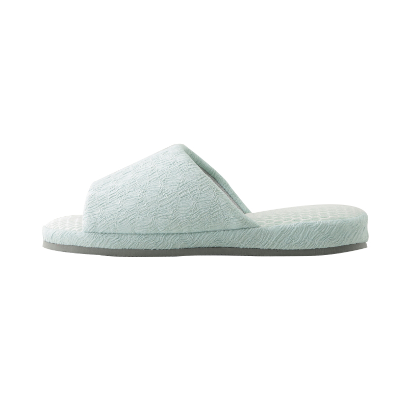 わずかな高さがあることで、フラットなスリッパよりも自然な足の角度になり、姿勢をサポート