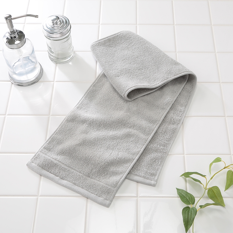 このタオルは、耐久性に優れ、ほどよいかたさと張りのある質感で、使うたびに頼もしさを感じられます。