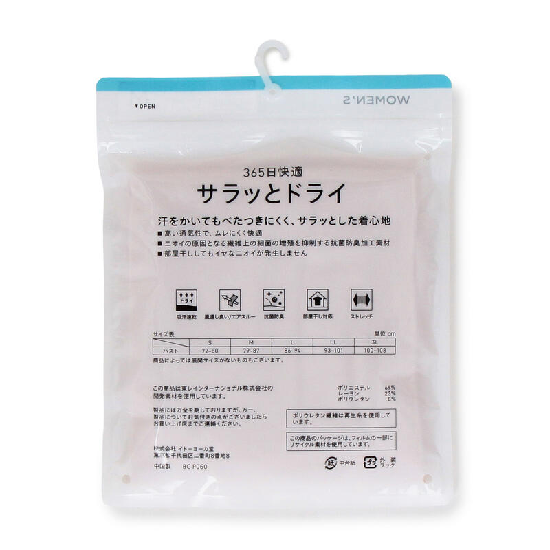 吸汗速乾・抗菌防臭加工によって匂いも気にならず、一日中気持ち良く着用できます。