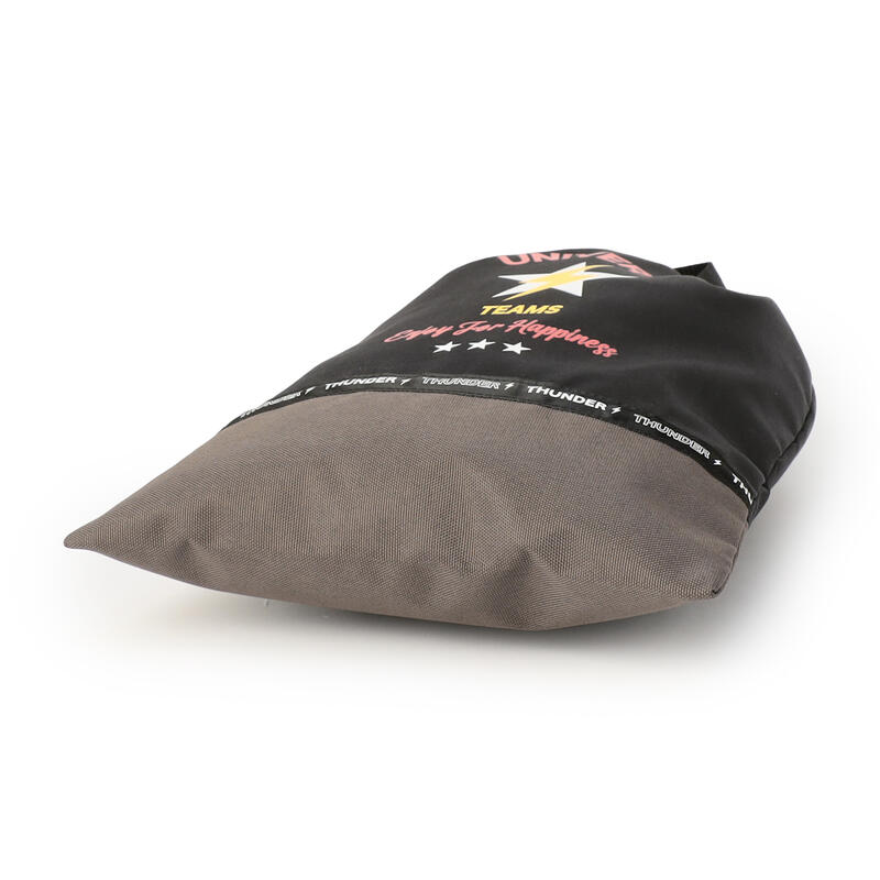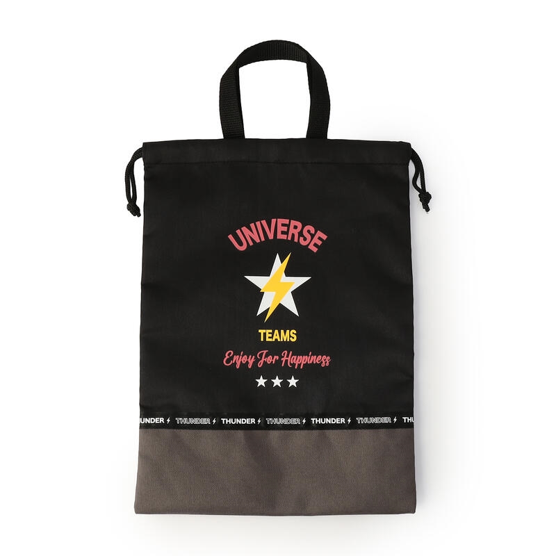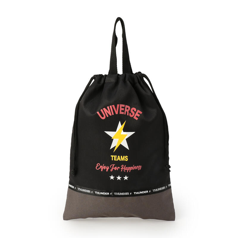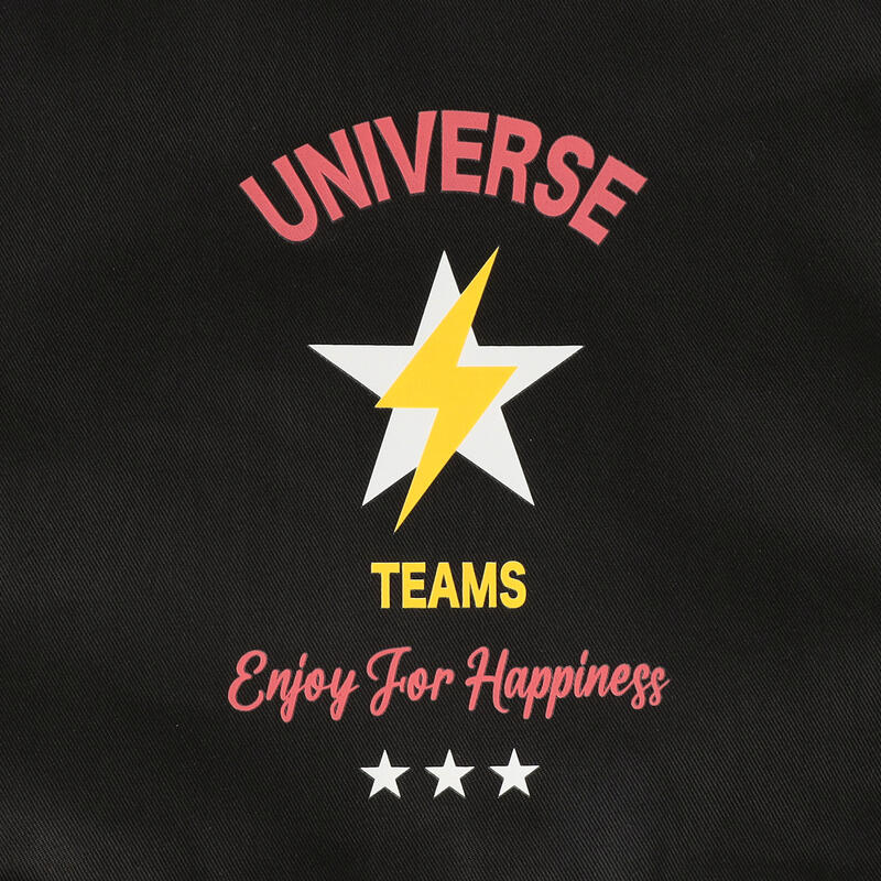 稲妻モチーフと、カレッジロゴを思わせる文字プリントも配した、グラフィカルなアイテムです。