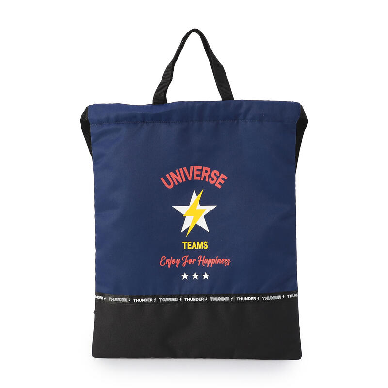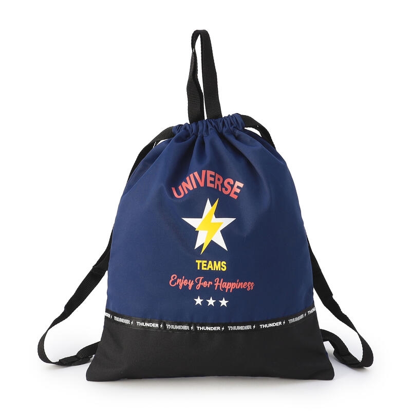 稲妻モチーフと、カレッジロゴを思わせる文字プリントも配した、グラフィカルなアイテムです。
