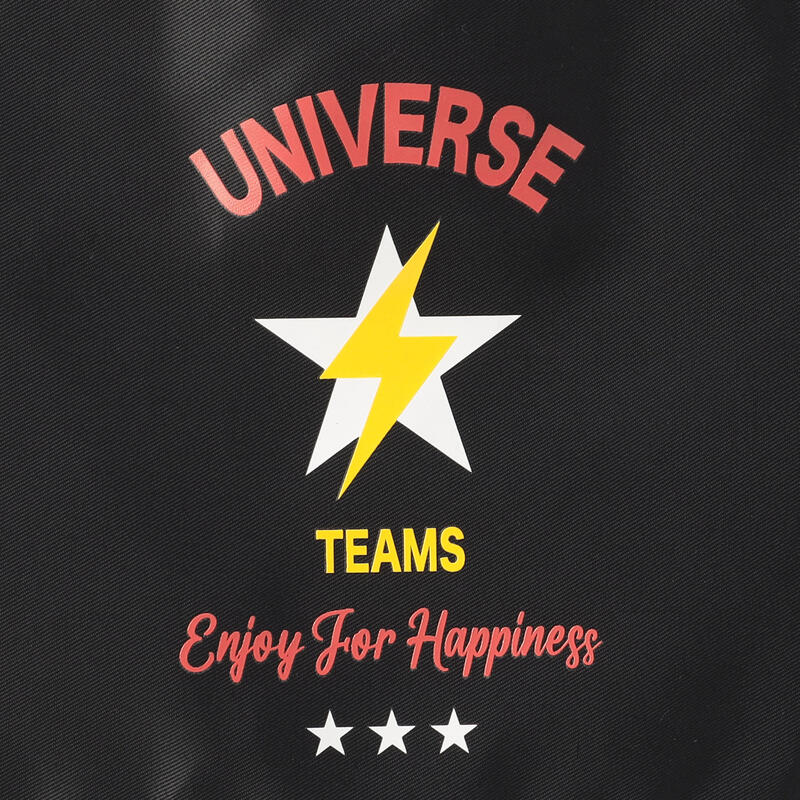 稲妻モチーフ、カレッジロゴのようなレタードプリントが目を引くデザイン。