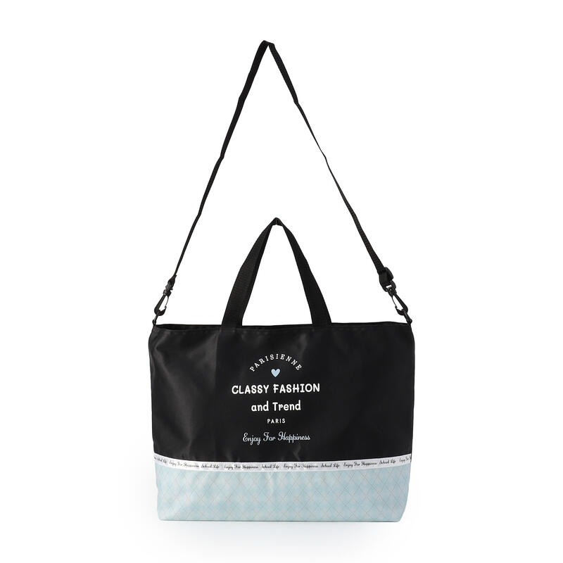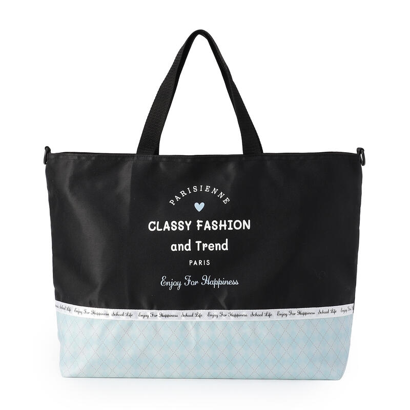 英字ロゴがあしらわれ、大人っぽい雰囲気のチェック柄大型レッスンバッグです。