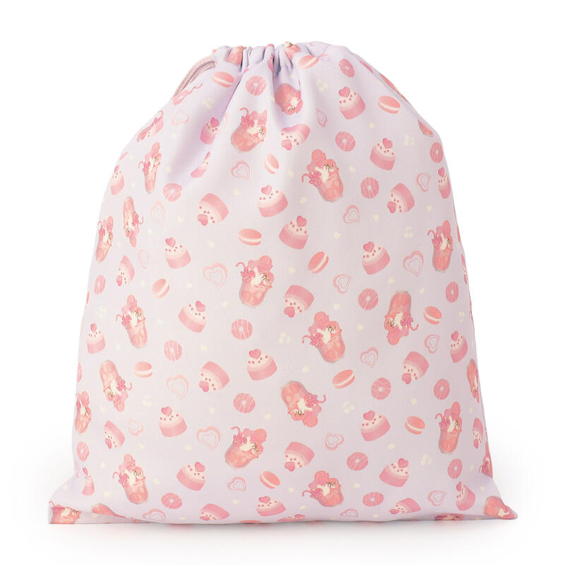 収納力抜群の大きめサイズで体操着にもおすすめ、おそろいで持てるサイズ違いも展開しています。