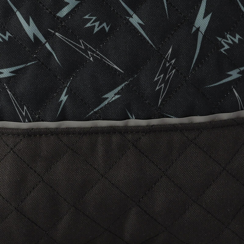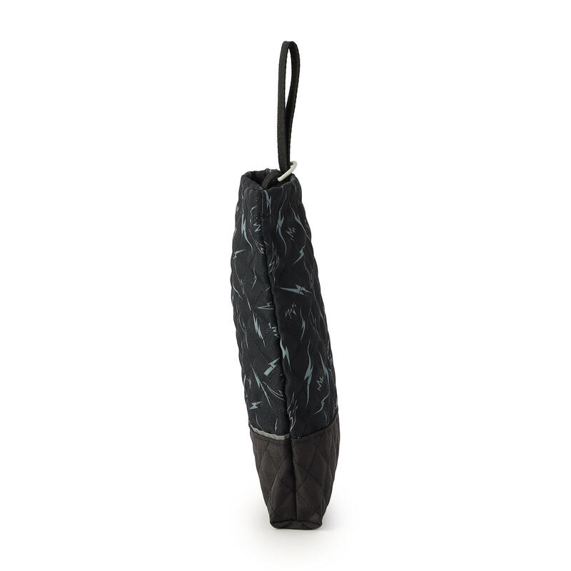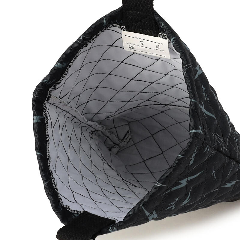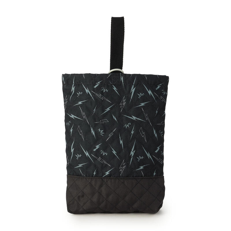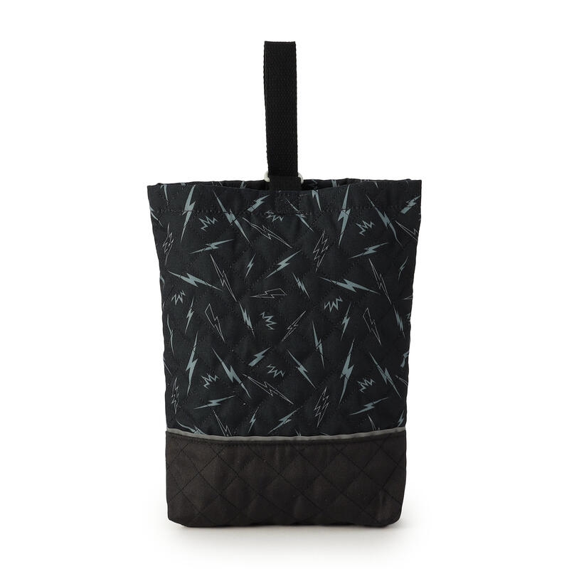 イナズマモチーフを散りばめた、キルティング仕立てのシューズケース。
