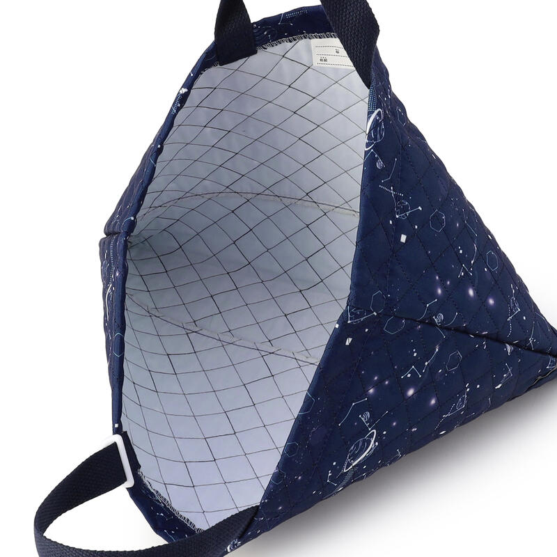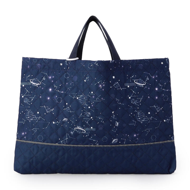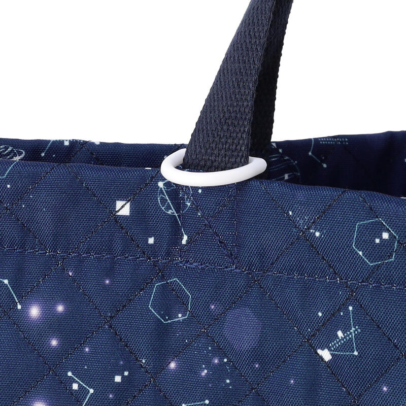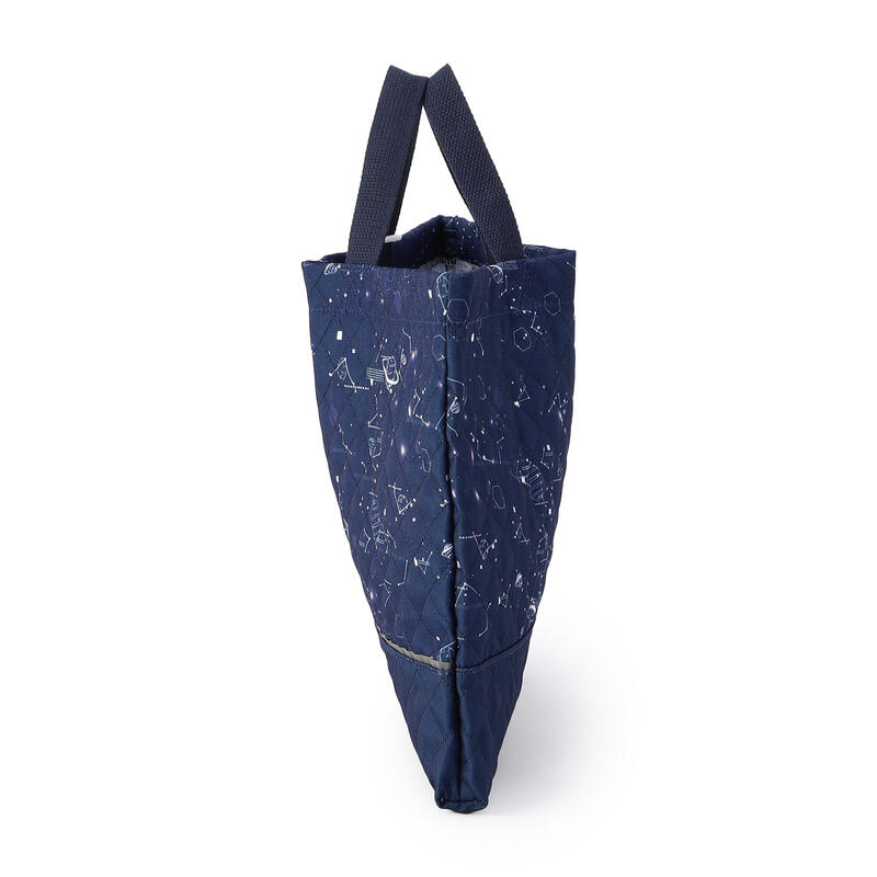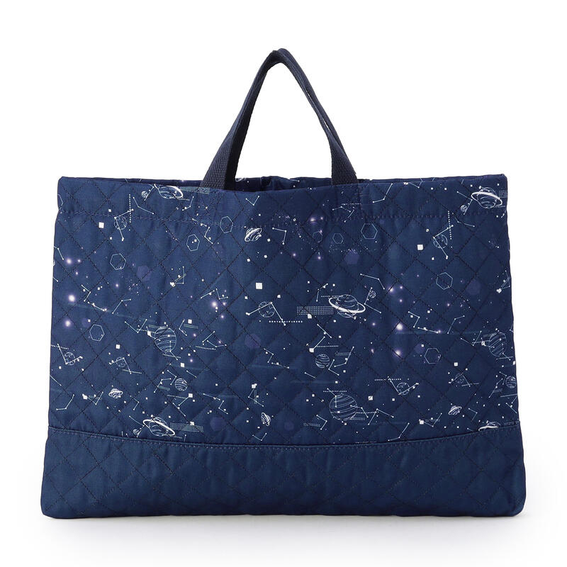 スペース柄に包まれたすっきりと収まるサイズのトートバッグ。