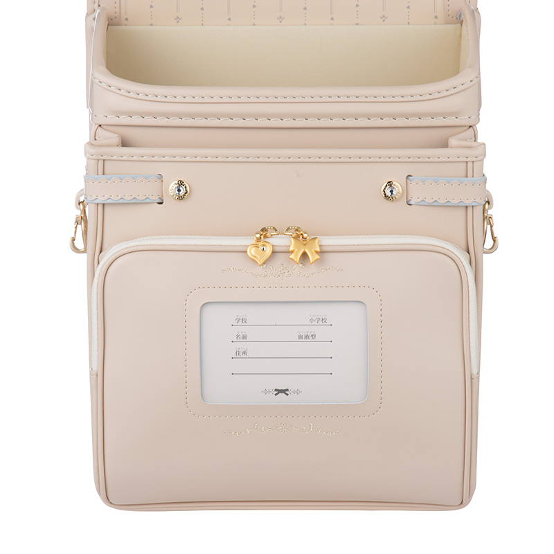 ●前ポケット・・リボンとハートの引手が付き、大きく開くワイドポケットです。