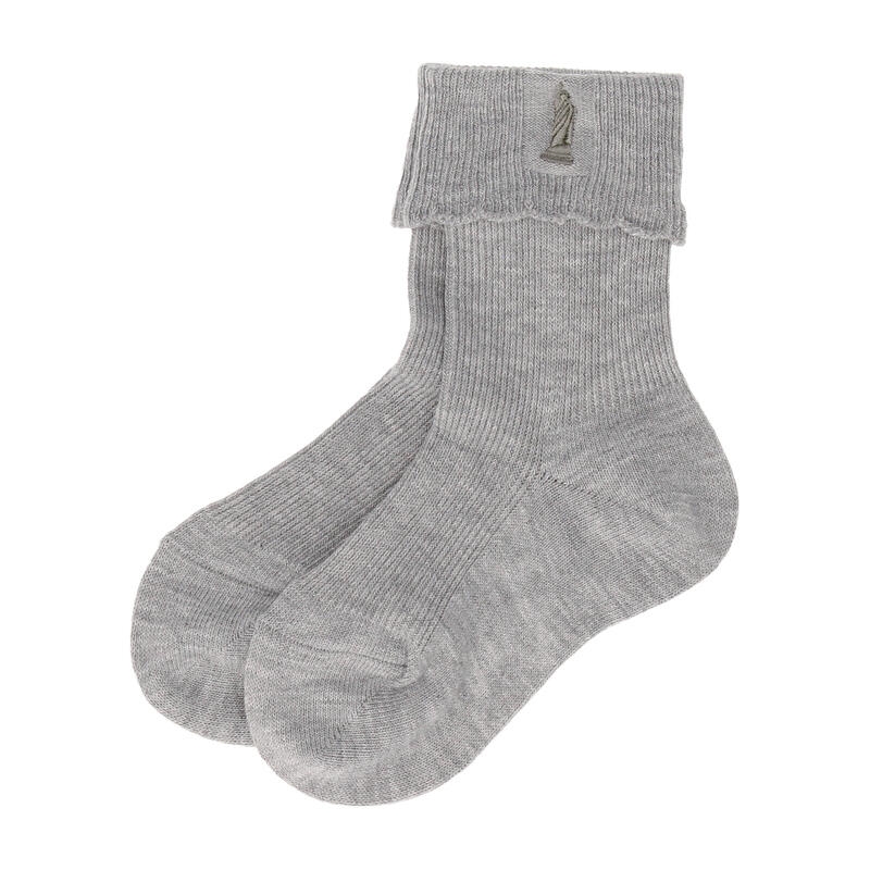 裾をスカラップ調にした、折り返し部分が印象的なクルー丈ソックス。