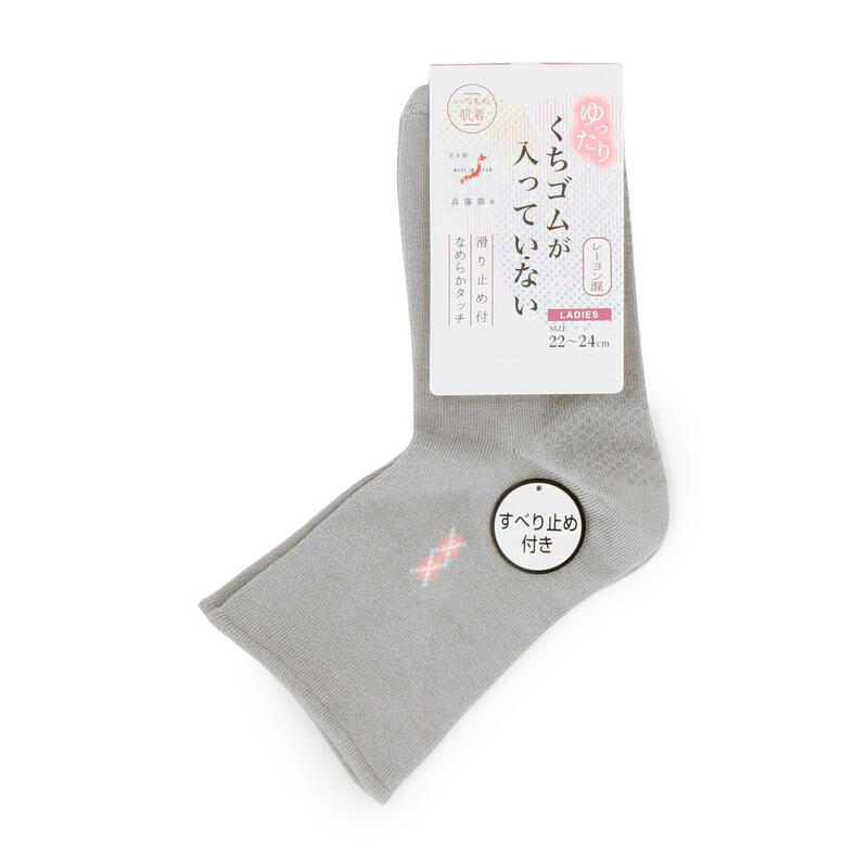 いつもの肌着レーヨン混ゴム無しダイヤ柄滑り止め付きクルー丈