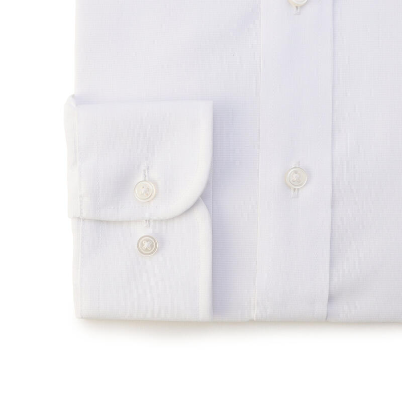 このシャツは形態安定加工を施してありますので、中温で軽く滑らせるようにアイロンがけしてください。