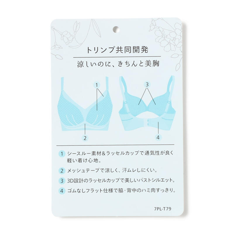 ・シースルーのヘム素材と通気性のあるラッセルカップを採用で更に通気性と軽さがアップデート。