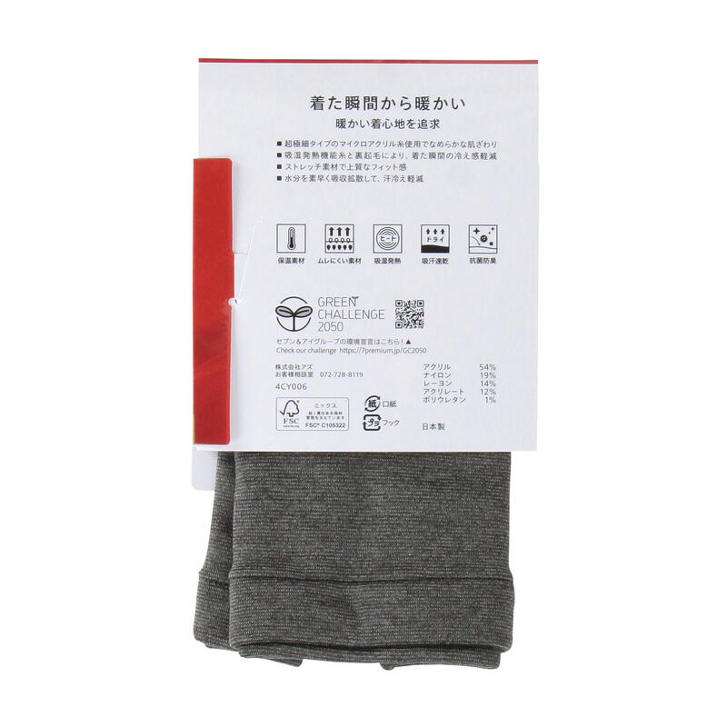 ・吸湿発熱機能糸と裏起毛により、着た瞬間の冷え感軽減