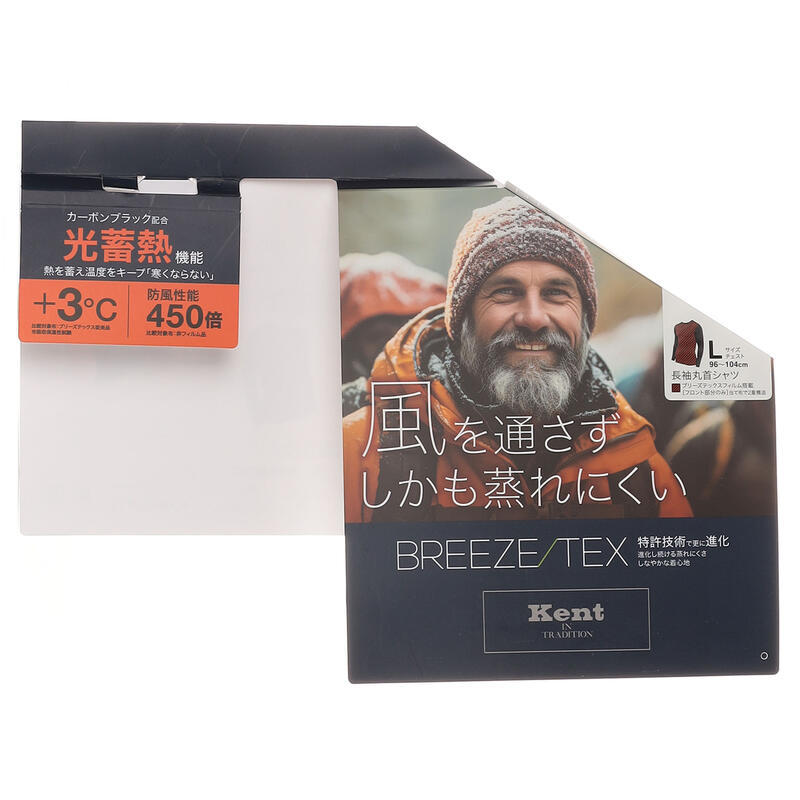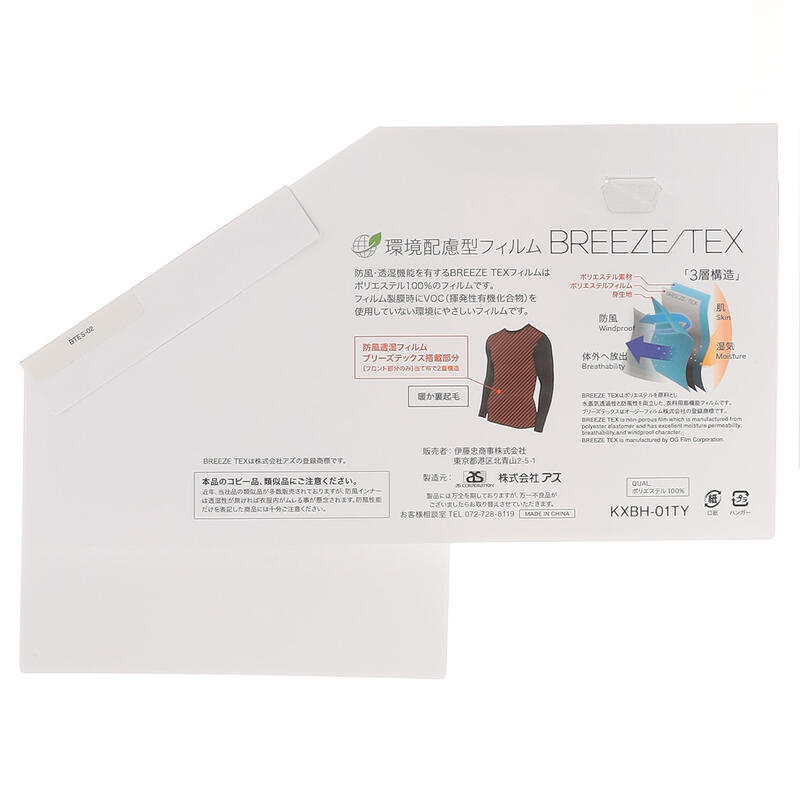 寒さを感じやすい前身頃部分に、防風透湿フィルム【BREEZE TEX】を搭載。