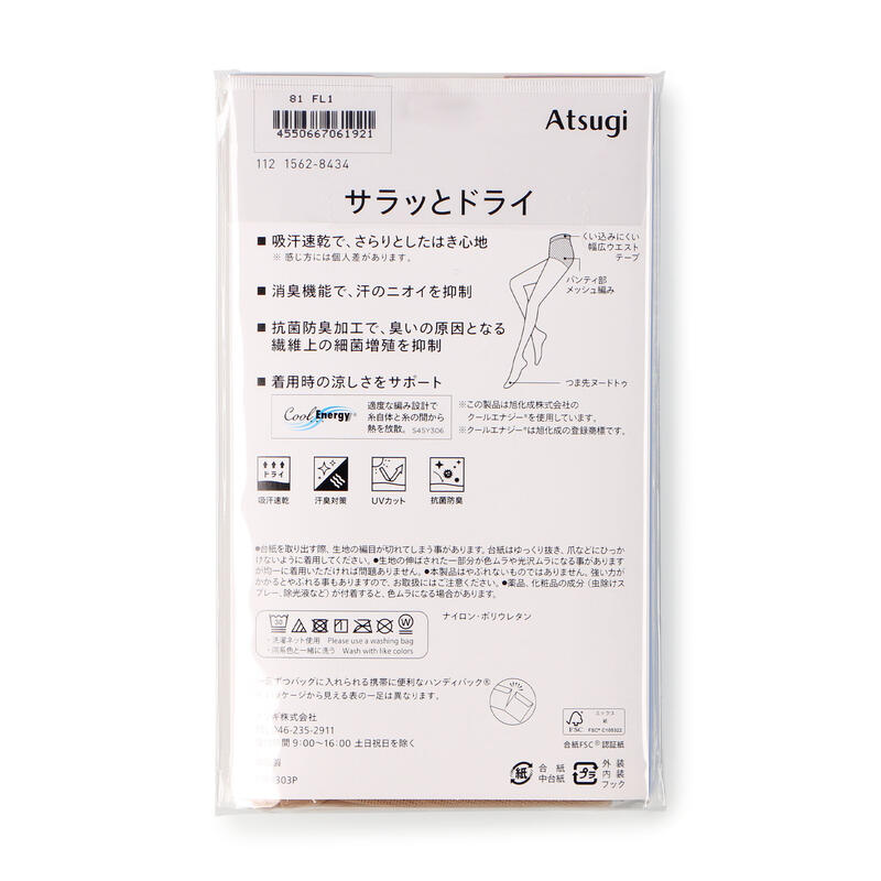 クールエナジーで着用時の涼しさをサポート、UV対策加工、パンティ部メッシュ編み、ヌードトゥ
