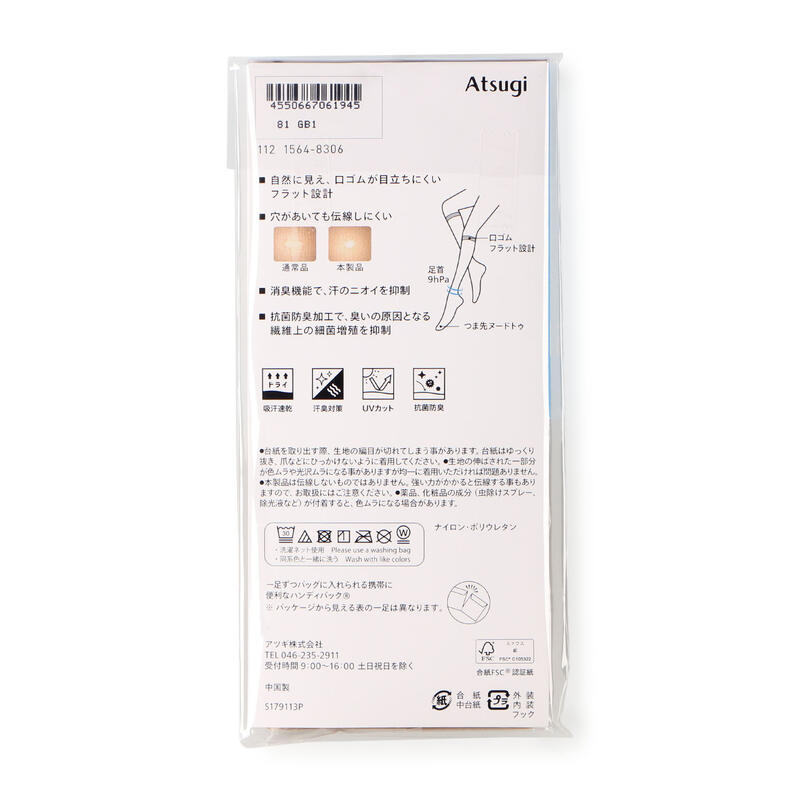 消臭機能、抗菌防臭加工、UV対策加工、足首9hPa、口ゴムが目立ちにくいフラット設計、ヌードトゥ